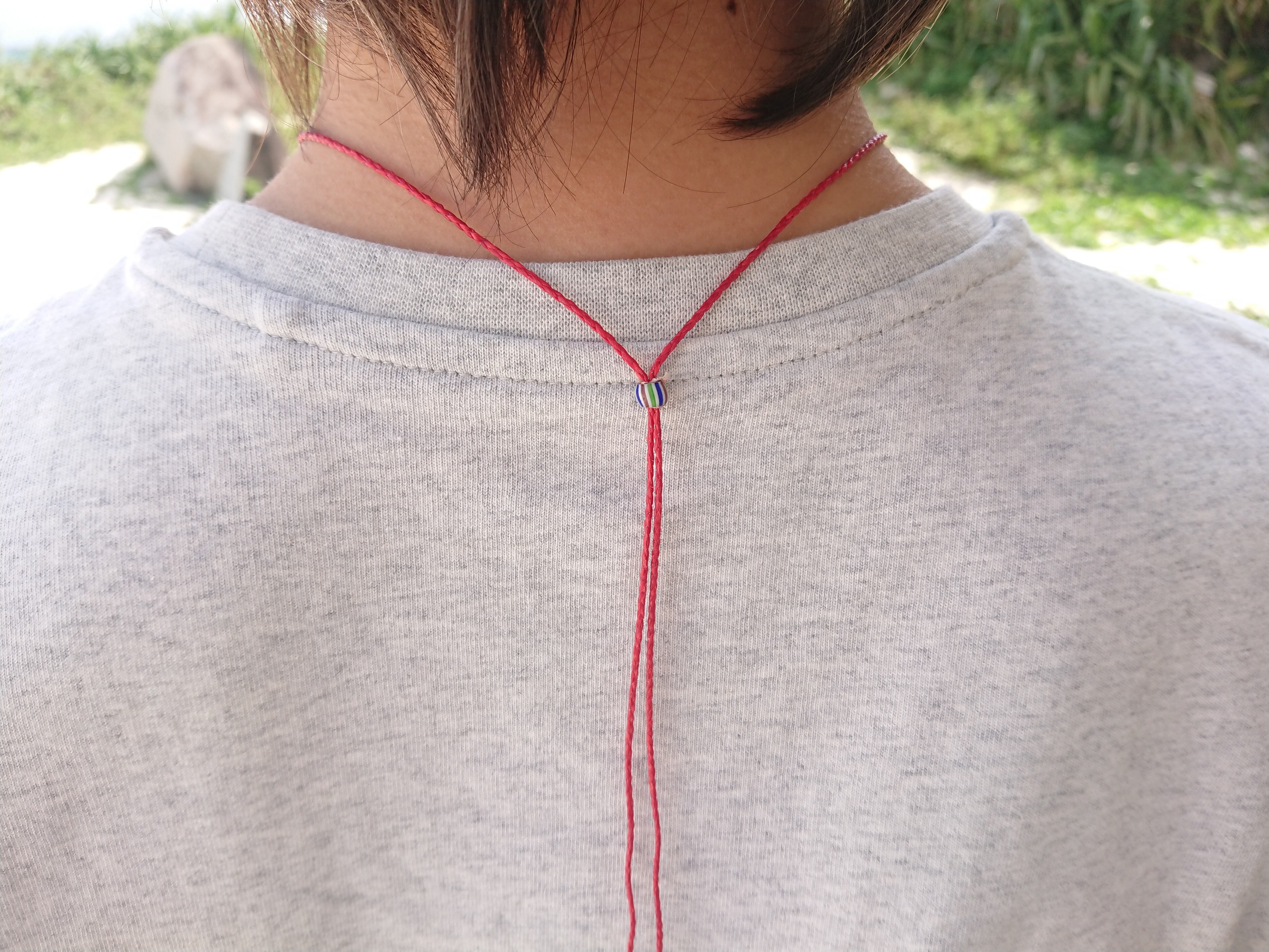 調整スライド部分には、シェブロンビーズ。エンドにはトンボ玉を使いました。